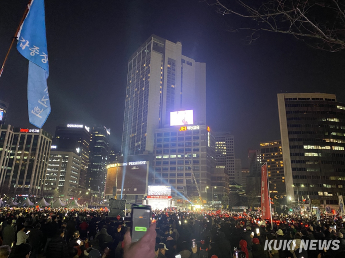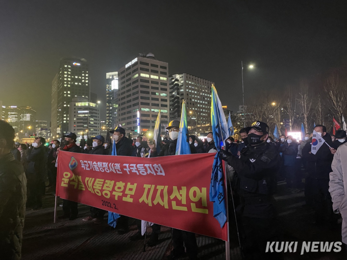 이날 8시에 시작한 유세는 약 한 시간 가량 이어졌다. 태극기와 빨간색 조명을 든 지지자들은 윤 후보가 등장하자 "윤석열 대통령"을 외치며 연신 환호했다.마이크를 잡은 윤석열 후보는 문재인 정부의 부동산 정책을 언급하며 연설을 시작했다. 그는 "자가를 갖게 되면 보수화된 국민이 민주당을 찍지 않을 것이라는 판단이 현 부동산 정책의 출발점"이라며 "정부의 재건축과 재개발 방해가 서울 집값을 폭등하게 했다"고 주장했다. 이어 "민주당 집권 5년동안 28번의 부동산 정책이 고쳐졌지만 모두 쇼였다. 국민을 모시는 머슴이 정치적 이익을 챙기는 게 바른 민주주의인가"라고 지적했다.