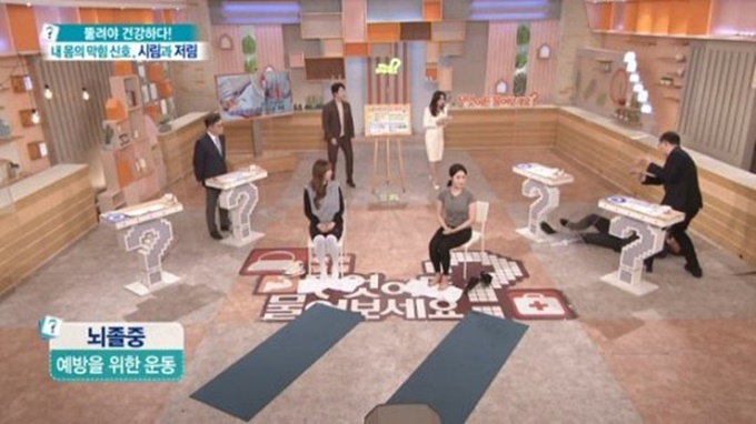 14일 오전 10시 생방송으로 진행된 ‘무엇이든 물어보세요’에서 뇌졸중 예방 운동이 진행되던 중 남자 패널로 출연한 김학선 연세 세브란스병원 정형외과 전문의가 갑자기 쓰러지는 모습이 그대로 송출됐다.