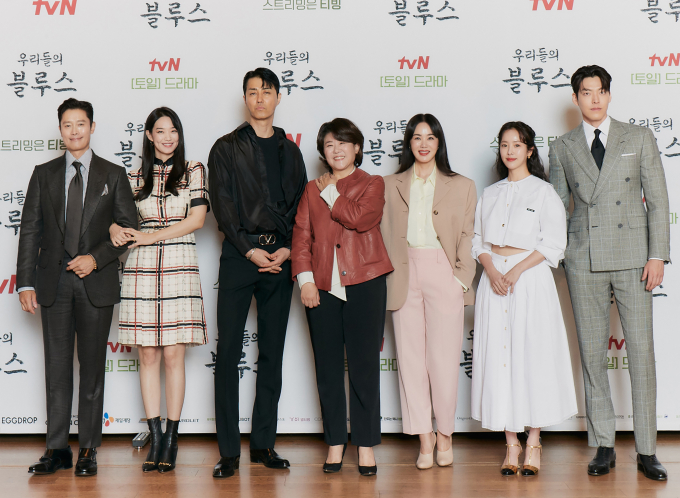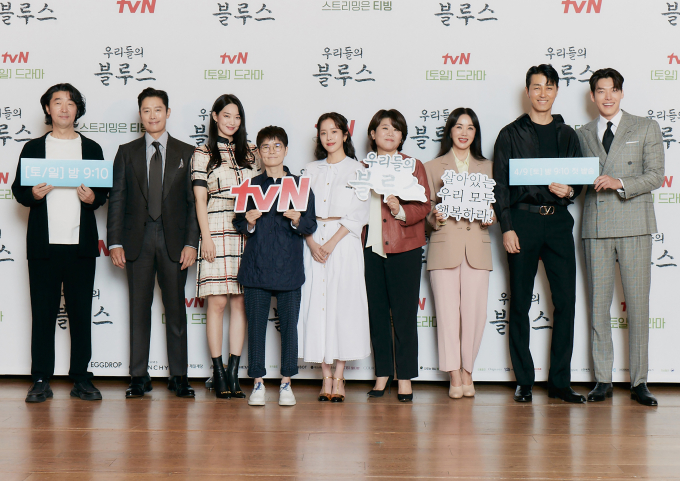 쟁쟁한 이들이 한자리에 모였다. 배우 이병헌, 신민아, 차승원, 이정은, 엄정화, 한지민, 김우빈 등 각자가 주인공이 된다. 오는 9일 첫 방송을 앞둔 tvN 새 토일드라마 ‘우리들의 블루스’는 제주도를 배경으로 여러 인물들의 인생 이야기를 옴니버스 드라마로 담았다. SBS ‘그 겨울, 바람이 분다’·‘괜찮아, 사랑이야’, tvN ‘라이브’ 등으로 호흡을 맞춘 노희경 작가와 김규태 감독이 또 한 번 의기투합했다. 배우들과 감독, 작가들은 7일 온라인으로 생중계된 제작발표회 현장에서 ‘우리들의 블루스’를 소개했다.