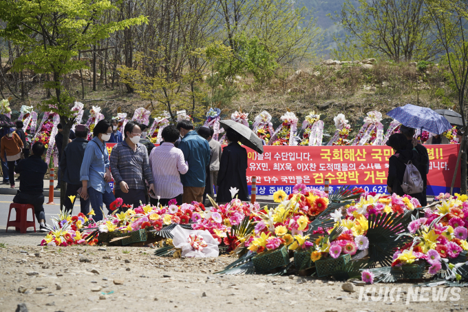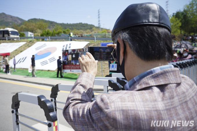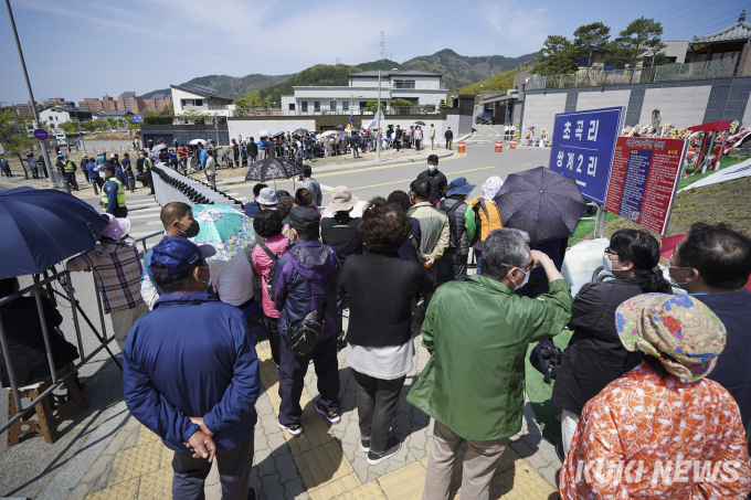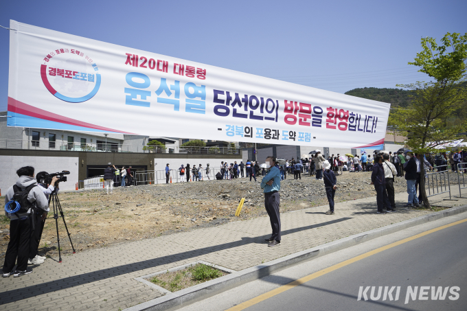 윤석열 대통령 당선인과 박근혜 전 대통령 만남이 예정된 12일 대구 달성군 유가읍 박근혜 전 대통령 사저앞에 시민들이 북적이고 있다.