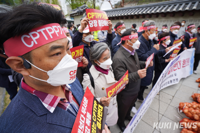 이날 전국농어민 비상대책위원회는 CPTPP 가입신청에 대한 새로운 정부의 입장발표와 농축수산업 유지발전을 위한 계획을 요구했다.