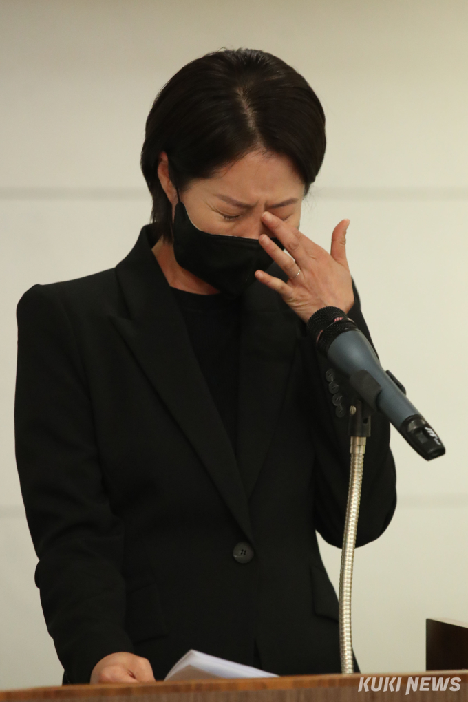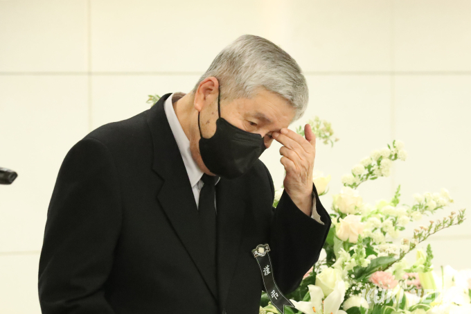 11일 서울 강남구 삼성서울병원 장례식장에서 열린 영화배우 고 강수연 영결식에서 사회를 맡은 배우 유지태가 생각에 잠겨 있다.