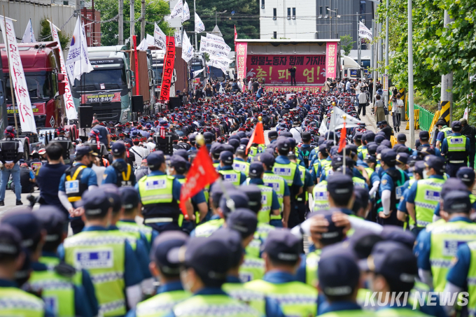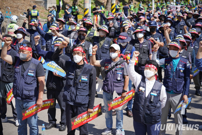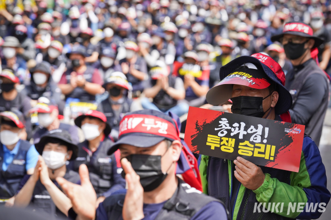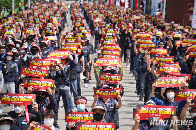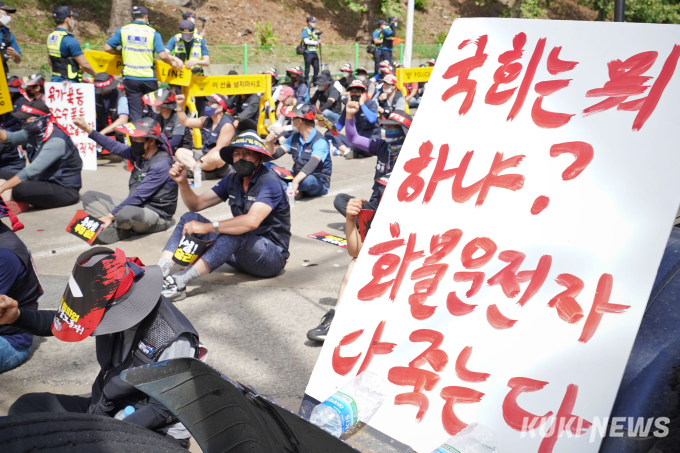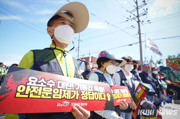 이날 화물연대는 △안전운임 일몰제 폐지 △안전운임제 전차종, 전품목 확대 △운송료 인상 및 생존권 보장 △지입제 폐지와 화물운송산업 구조 개혁 △노동기본권 확대와 화물노동자 권리보장을 요구했다.