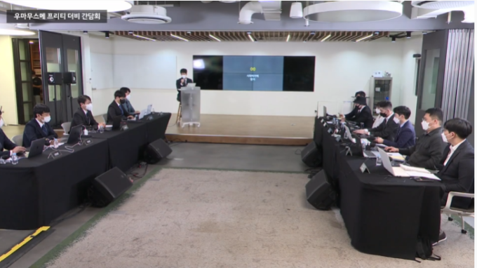 카카오게임즈는 판교 사옥에서 우마무스메 이용자 간담회를 17일 개최됐다. 이날 행사에는 우마무스메 사업총괄본부장, 서비스 운영 실장 등 카카오게임즈 인원 5명과 자율협의체 소속 유저 7인, 보조인원 4인, 법조인 1인이 참석했다.