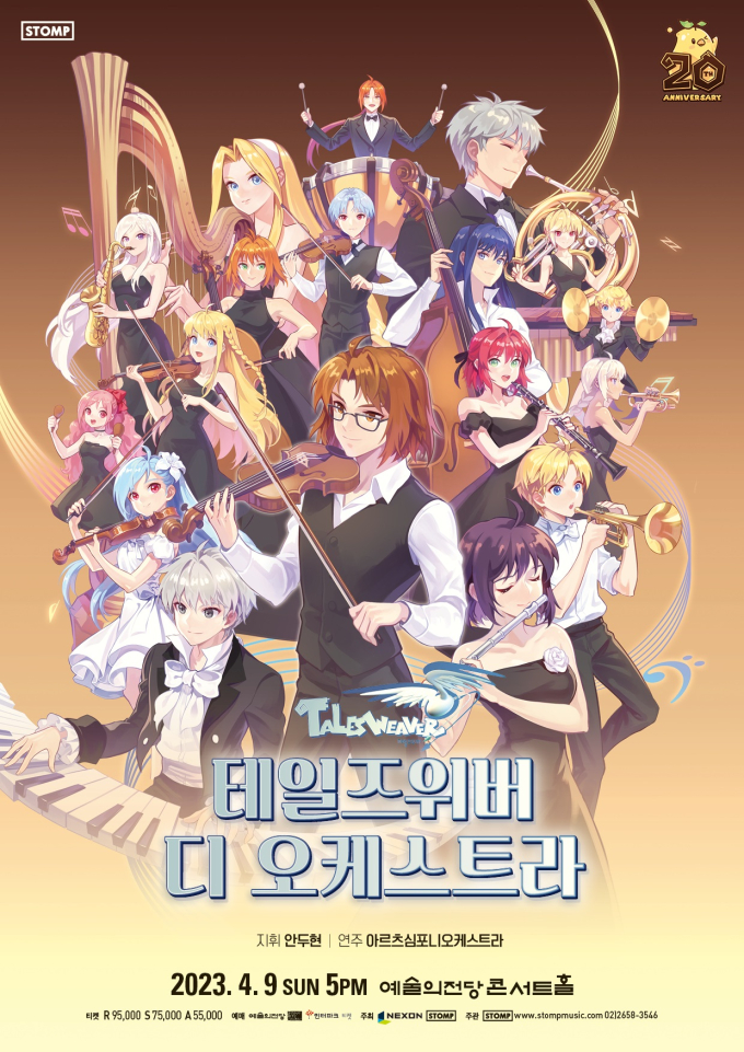 넥슨은 자사의 온라인 RPG ‘테일즈위버’가 오는 4월 9일 서울 예술의전당 콘서트홀에서 20주년 기념 첫 단독 오케스트라 공연 ‘테일즈위버 디 오케스트라’를 개최한다고 16일 밝혔다.