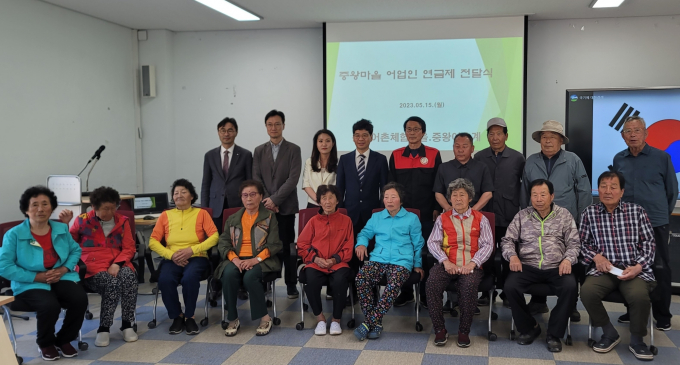 국민연금공단은 어촌마을 최초로 서산 중리마을에서 어촌 마을자치연금 제1호의 출발을 알리는 ‘연금 지급식’을 15일 개최했다고 밝혔다.
