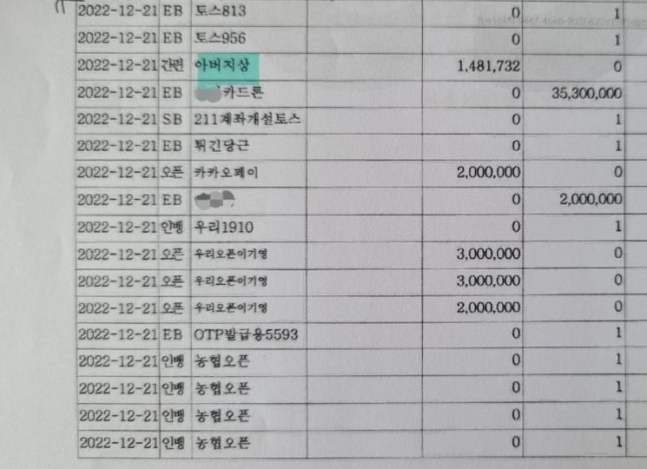 A씨는 또 “(이기영이) 아버지 살해 직후 아버지 휴대전화에 토스 앱을 내려받아 기존 잔고를 본인 통장으로 이체한 사진”이라며 “남의 아버지 죽여놓고 보란 듯이 ‘아버지상’이라고 메모해 이체해 사람 우롱하는 전형적인 사이코패스”라고 주장하기도 했다.