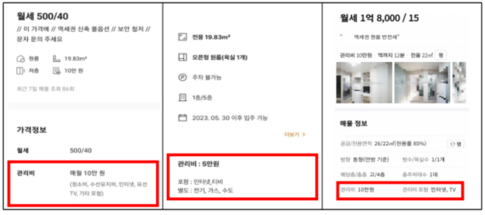 온라인중개플랫폼도 표준화한 입력기능을 마련해 임차인이 매물 관리비 부과내역 등 정보를 명확히 확인할 수 있어야 한다.