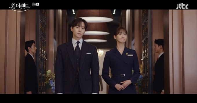 ‘킹더랜드’는 재벌 2세 본부장 구원(이준호)과 호텔리어 천사랑(임윤아)이 킹호텔을 배경으로 벌이는 이야기를 담은 드라마다. 가수 겸 배우 이준호(2PM)와 윤아(소녀시대)의 만남으로 주목받았다.