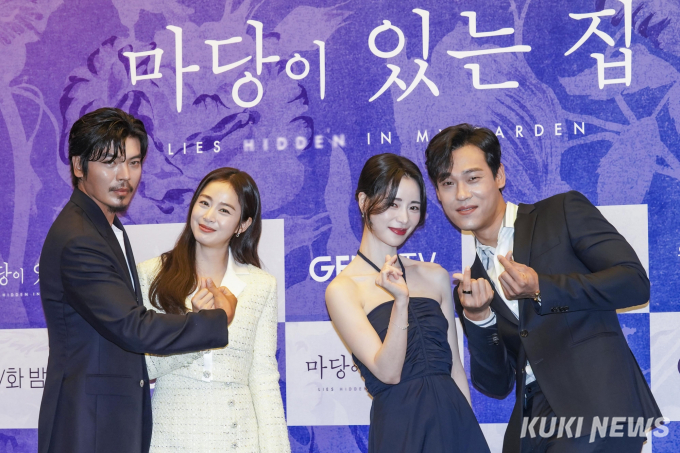 배우 김태희와 임지연이 스릴러로 만났다. 19일 첫 공개하는 지니TV·ENA 오리지널 드라마 ‘마당이 있는 집’을 통해서다. ‘마당이 있는 집’은 뒷마당에서 나는 수상한 냄새로 인해 인생이 엮인 두 여자가 벌이는 서스펜스 스릴러다. 김태희, 임지연을 비롯해 김성오, 최재림이 출연한다. 연출은 정지현 PD가 맡았다. 이들 배우와 정 PD는 이날 첫 방송을 앞두고 서울 상암동 스탠포드호텔에서 제작발표회를 열고 각자의 포부를 밝혔다.