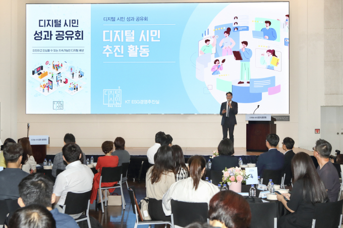 KT는 19일 서울 이화여대 이삼봉홀에서 ‘디지털 시민 One-Team’의 성과 공유회를 개최했다. 디지털 시민 One-Team은 지난해 12월 출범했다. KT를 비롯한 22개 기업과 전문기관이 참여하고 있다. △교육 △기술·연구 △피해지원 3개 분과로 구분해 실행 과제를 도출하고 협력 체계를 운영한다.