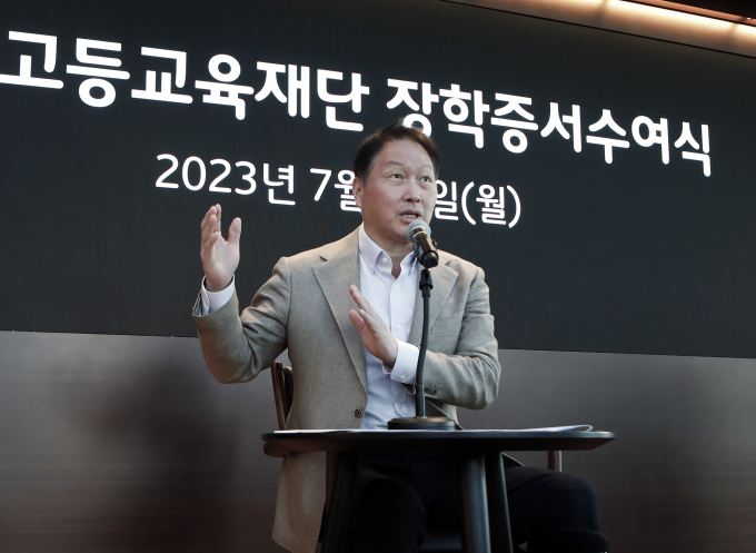 한국고등교육재단은 최 회장 선친인 고(故) 최종현 선대회장이 ‘10년을 내다보며 나무를 심고, 100년을 내다보며 인재를 키운다’는 신념으로 지난 1974년에 설립했다. 한국의 미래를 책임질 인재를 양성한다는 차원에서 재단명에도 회사 이름을 넣지 않았다.