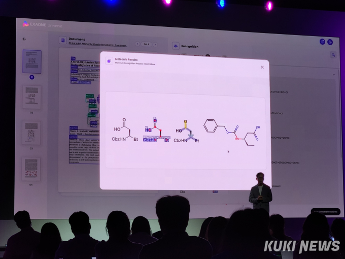 엑사원 디스커버리는 세상에 없던 소재와 신약 개발을 앞당길 수 있는 플랫폼으로 소개됐다. 논문과 특허 등 전문 문헌의 텍스트뿐만 아니라 분자 구조, 수식, 차트, 테이블 등 비텍스트 정보까지 AI가 읽고 학습해 데이터베이스화하는 심층 문서 이해 기술이 적용됐다.