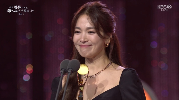‘더 글로리’에서 학교 폭력 피해자 문동은을 연기한 배우 송혜교가 첫 대상을 거머쥔 주인공이 됐다. 뭉클해하며 단상에 오른 송혜교는 안길호 감독과 김은숙 작가, 함께 연기한 배우들과 스태프 등 ‘더 글로리’ 팀에게 감사 인사를 전했다. 감정에 북받치는 듯 말을 쉽사리 잇지 못하자 객석에서 “예쁘다 송혜교”라는 외침이 터져 나오기도 했다. 송혜교는 “첫 장르 도전이어서 모든 장면이 어렵고 내 연기가 맞는지를 늘 고민했다”면서 “안 해본 장르와 캐릭터가 재미있게 느껴졌다. 연기하면서도 즐거워서 오랜만에 현장에 가는 게 행복했다”며 미소 지었다. 수상 말미 송혜교는 “이런 자리가 내게 없을 것 같아 처음으로 스스로에게 칭찬해주고 싶다”며 “수고했다, 혜교야”라고 덧붙였다.