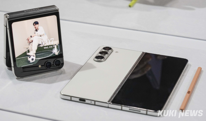 이날 폴더블 스마트폰 ‘갤럭시 Z 플립5’와 ‘갤럭시 Z 폴드5’가 전격 공개, 참석자들의 환호를 받았다. 두 시리즈 모두 새로운 ‘플렉스 힌지’를 장착, 균형 잡힌 디자인과 외부 충격을 분산시키는 구조가 가능해졌다. 갤럭시 Z 플립5는 이전 모델에 비해 더욱 커진 커버스크린 ‘플렉스 윈도우’로 눈길을 끌었다. 약 86.1㎜(3.4형) 크기다. 시계는 물론 핸즈프리 셀피, 삼성페이와 삼성헬스, 미디어, 통화, 구글파이낸스 등도 플렉스 윈도우를 통해 가능하다.