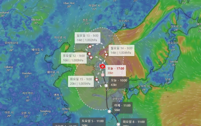 제6호 태풍 카눈이 북한으로 향했다가 다시 수도권과 남부지방으로 돌아올 수 있다는 해외 기상청의 관측이 나왔다.