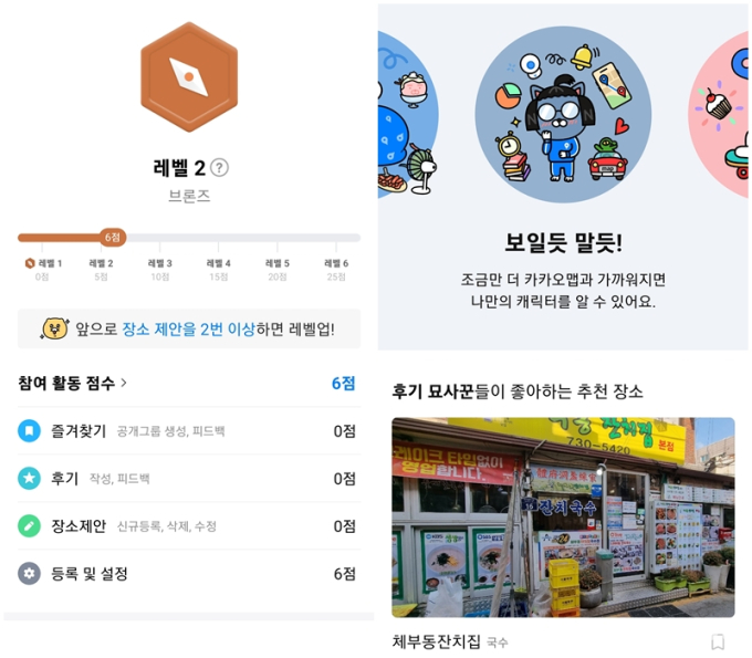 재미 요소도 더해졌다. 카카오에 따르면 카카오맵 활성 사용자와 장소 후기가 증가하는 추세다. 카카오는 지난 5월 카카오맵 레벨 서비스를 도입했다. 이용자 활동에 따라 레벨과 캐릭터를 부여하는 서비스다. 후기 작성, 장소 제안, 즐겨찾기 그룹 생성 등의 활동을 하면 레벨이 올라간다. 지난 3일부터는 레벨업 챌린지 이벤트도 진행 중이다.