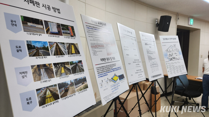 주민 의견은 달랐다. 아파트 인근 차폐판 시공이 제외된 A 아파트를 중심으로 설명회에서 성토가 벌어졌다. A 아파트 주민이라고 밝힌 남성은 “아파트 바로 앞에 있는 교차로를 공업지대라고 차폐에서 제외시키면 어떻게 하느냐. 공업지대지만 사람이 사는 지역과 너무 가깝다. 해당 구간에는 오피스텔도 있다”고 목소리를 높였다. 또 다른 이들도 “모든 구간을 다 해달라. 이게 무슨 전 구간이냐”, “해당 구간만 누락시킨 이유가 무엇이냐”고 질타했다.