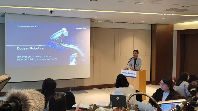 15일 금융투자업계에 따르면 전날 두산로보틱스는 여의도 63스퀘어에서 주요 임직원이 참석한 가운데 IPO 기자간담회를 개최했다. 이날 류정훈 두산로보틱스 대표는 “기술력 고도화와 소프트웨어 플랫폼 강화를 통해 협동로봇 시장 전반을 아우르는 생태계 구축에 박차를 가할 것”이라며 “향후 두산그룹의 유망한 신규 기술 중 협동로봇이 사업 포트폴리오와 연결되어 잘할 수 있을 것으로 판단된다”고 말했다.