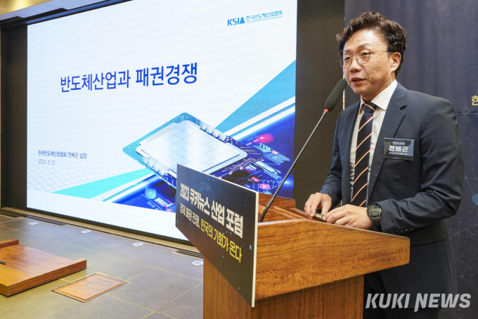 21일 서울 여의도 CCMM빌딩에서 ‘경제 패권 전쟁, 한국의 기회가 온다’를 주제로 2023 쿠키뉴스 산업포럼이 열렸다. 전배근 한국반도체산업협회 정책지원실장은 이날 ‘반도체산업과 패권 경쟁’을 주제로 발표에 나섰다.