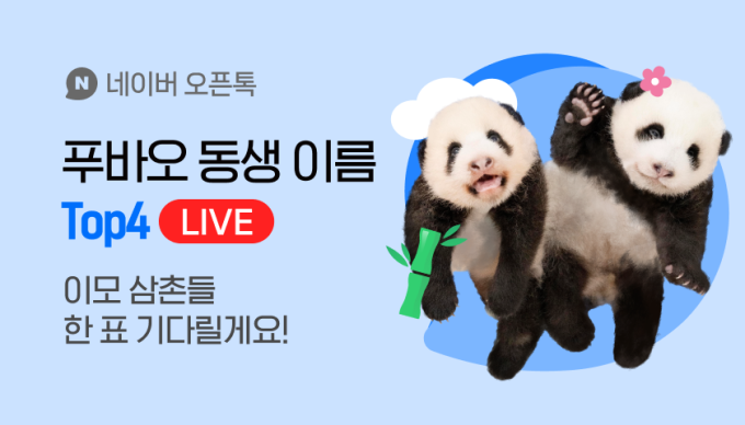 네이버 오픈톡에서 쌍둥이 아기판다의 이름을 결정하는 최종 투표가 진행된다.