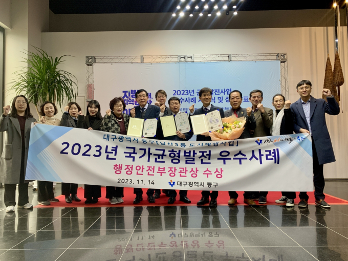 올해는 2022년도 국가균형발전특별회계로 지원된 총 359개의 사업 중 서면평가와 현장심사를 거쳐 총 31개의 단체가 우수사례로 선정됐으며, 그중 남산3동 도시재생뉴딜사업이 대구시 9개 구⋅군 중 유일하게 선정돼 행정안전부장관 표창을 수상했다.