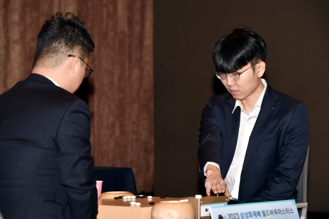 22일 경기도 고양시 삼성화재 글로벌 캠퍼스에서 속개된 2023 삼성화재배 월드바둑마스터스 8강 둘째 날 경기에서 신진서 9단이 셰얼하오 9단에게 158수 만에 흑으로 불계패했다.