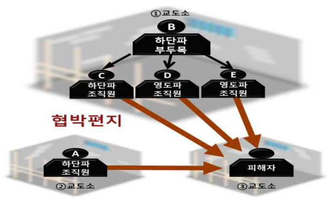조직의 부두목이 구속되자 다른 교도소・구치소에 수용 중이던 하단파와 영도파 조직원들이 편지를 보내 피해자에게 보복을 예고하고 위증을 강요하는 수법으로 피해자의 진술을 번복시키려 했다고 검찰은 밝혔다.