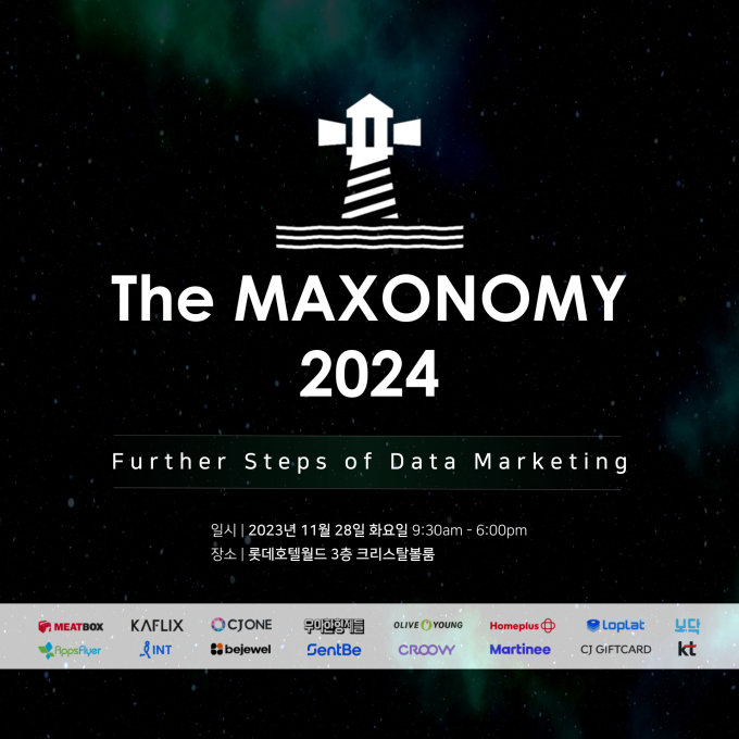 외환 솔루션 기업 센트비는 데이터 분석 솔루션 Amplitude를 이용한 핵심 지표 활용법, 제주패스를 운영하는 캐플릭스는 스타트업의 데이터 환경 분석 구축 사례, 아이지넷은 보험 조회 및 청구 앱 보닥 사례를 통해 CRM 마케팅으로 전환율을 상승시킨 노하우 등을 공유한다. 이 외에도 마티니아이오, 앱스플라이어, 로플랫 등은 ‘THE MAXONOMY 2024’ 후원사로 참여한다.