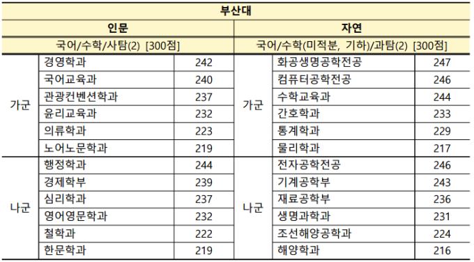 부산지역 대학의 지원 가능한 점수대는 인문과 자연계 모두 1~6점대 정도 하락할 것으로 예상된다.