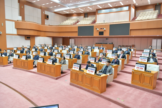 24일 부산시의회는 제317회 정례회 본회의에서 ‘한국산업은행법 개정 촉구 결의안’을 채택했다.(사진=부산시의회)