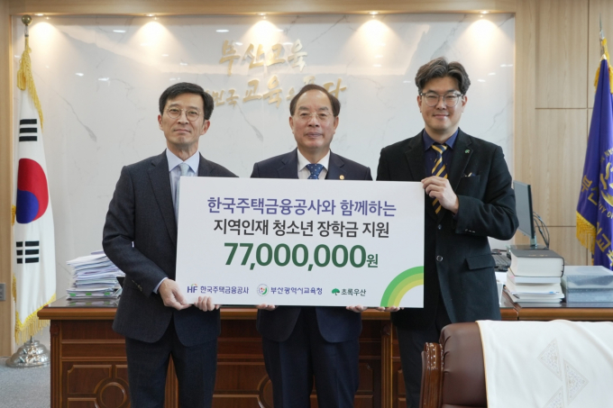 하윤수 부산시교육감이 한국주택금융공사로부터 'HF꿈자람 장학금'을 전달받았다.