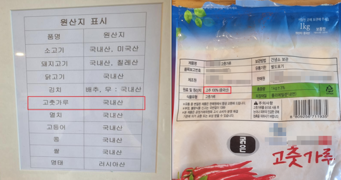 중국산 고춧가루를 국내산으로 원산지 거짓표시한 경우. 부산시
