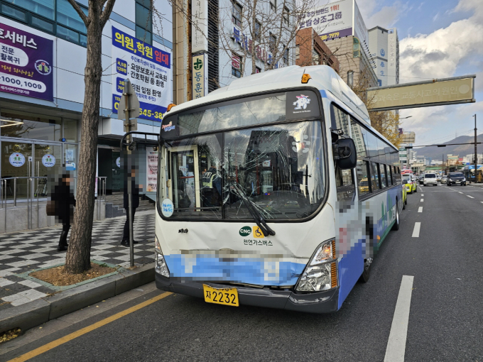 8일 오후 2시 40분경 부산 동구 수정동 소재 버스전용차로에서 시내버스끼리의 추돌사고가 발생했다.