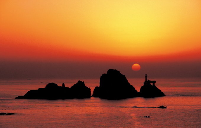 부산 오륙도 일출. 부산시 부산은 2020년 대한민국 제1호 국제관광도시 선정과 함께 부산에 대한 외국인들의 인식 및 인지도 향상을 위해 관광브랜드 개발을 시작해 지난해 9월 국내외 관광객에게 즐기고, 일하고, 살고싶은 도시 부산을 표현하는 ‘Play. Work. Live. Busan’을 슬로건으로 개발 완료했다.