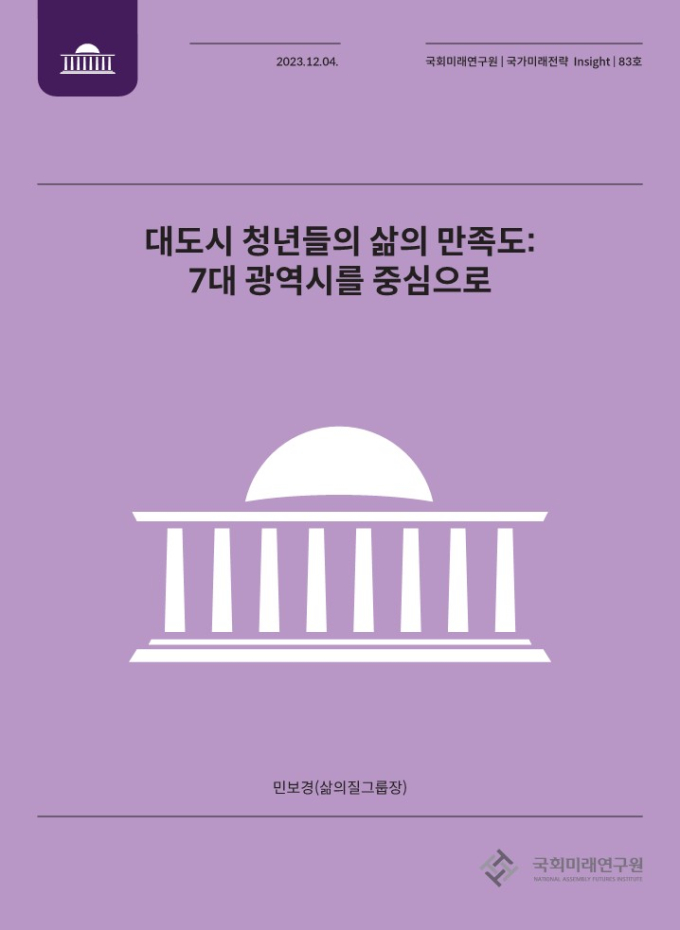 보고서 '대도시 청년들의 삶의 만족도: 7대 광역시를 중심으로'. 국회미래연구원