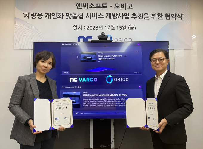 엔씨소프트는 18일 스마트카 플랫폼 전문기업 ‘오비고’와 차량용 AI 개인 맞춤형 기술 서비스 개발사업을 위한 업무협약(MOU)을 체결했다고 밝혔다.