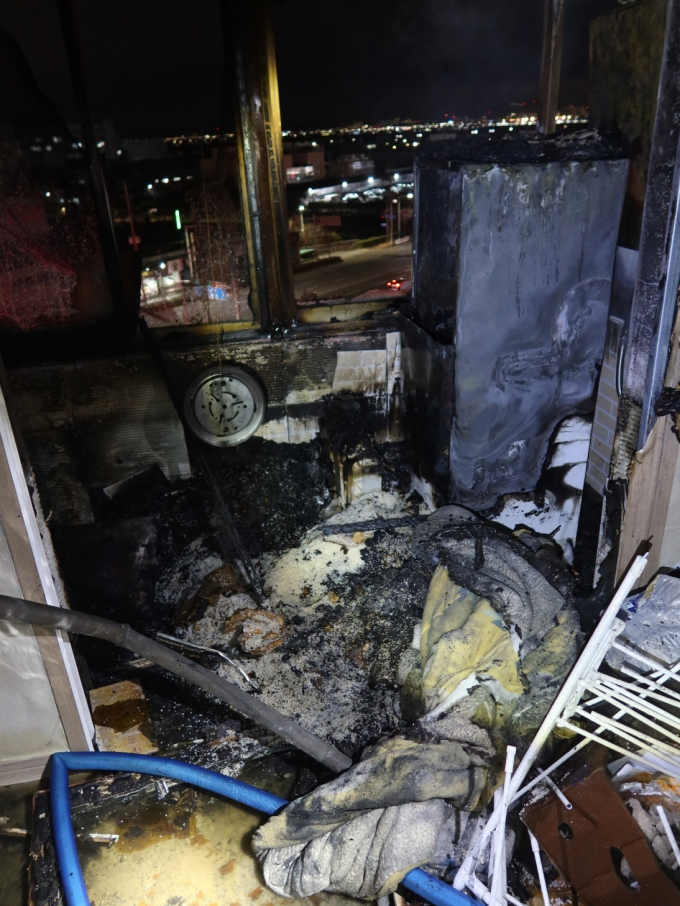 5층에 사는 거주자가 검은 연기와 화염이 베란다에서 발생한 것을 보고 소방서에 신고한 것으로 알려졌다.