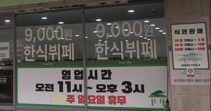 부산 연산동에 위치한 한 뷔페 식당은 식권을 구매할 시 7000원대에 음식을 먹을 수 있다. 식권 없이도 9000원에 이용 가능 하다.