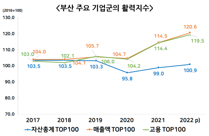 부산 주요 기업군의 활력지수. 부산상공회의소