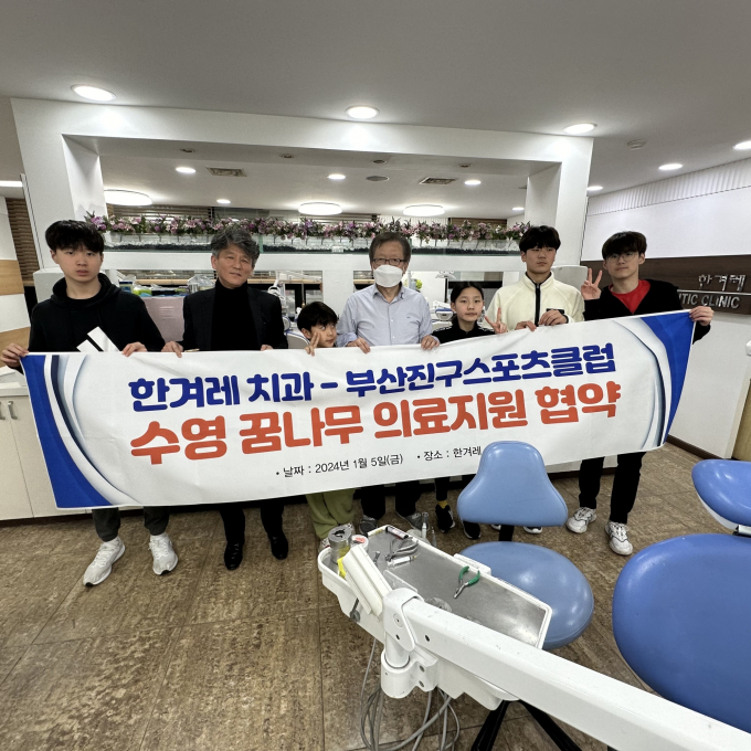 한겨레 치과(원장 김택영)와 (사)부산진구스포츠클럽(회장 변종준)은 수영 엘리트 선수들의 기량 향상을 위한 의료지원 협약을 체결했다.
