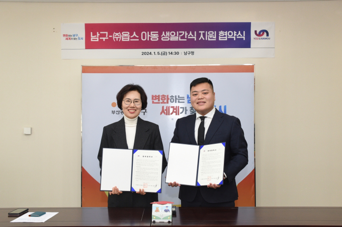 부산 남구와 ㈜옵스가 '드림스타트 아동 생일간식 지원' 업무협약을 체결했다.