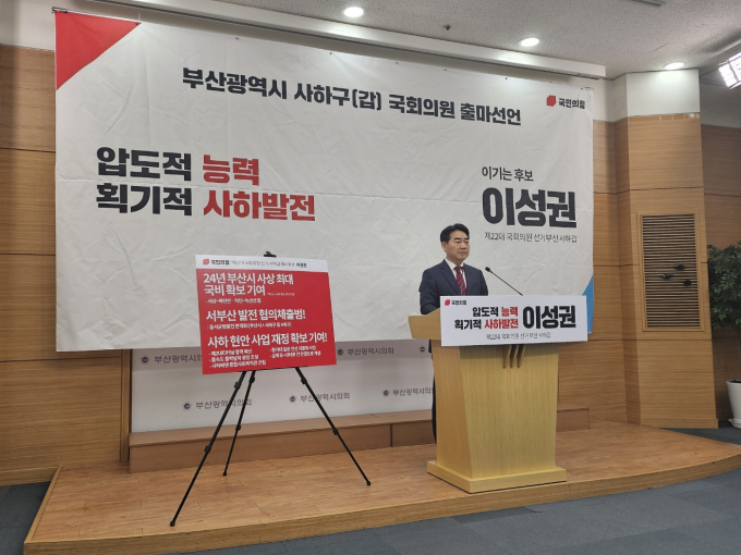 사하갑에 출사표를 낸 그는 “사하의 획기적 발전을 통한 서부산 균형발전 실현에 최선을 다하겠다”며 “사하에서 ‘발전의 돌풍’과 ‘승리의 편서풍’을 일으켜 국민의힘 부산총선 승리에 기여하겠다”고 말했다.