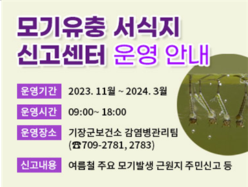 부산 기장군은 모기 개체 수 감소를 위해 오는 3월까지 '동절기 집중 모기유충 구제사업'을 추진한다.