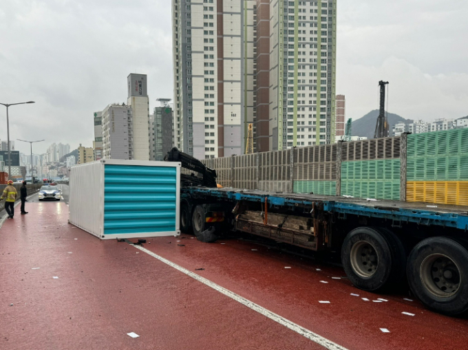 하지만 사고의 충격으로 화물차에 실려 있던 컨테이너가 도로로 떨어져, 2개 차로가 모두 통제됐다. 이로 인해 3시간여 동안 극심한 차량 정체가 발생했다.
