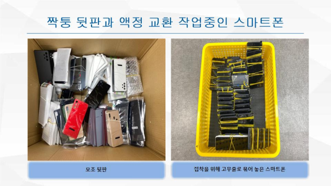부산경찰청 반부패·경제범죄수사대는 배터리 성능을 조작하거나 중국산 짝퉁 부품으로 조립된 중고 스마트폰을 만들어 시중에 1만대 상당을 유통하는 등 35억 원 상당의 부당이익을 챙긴 일당 28명을 검거하고, 이중 총책 3명을 구속했다.
