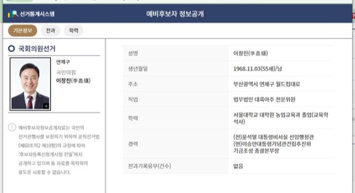이창진 예비후보자 정보공개.중앙선거관리위원회
