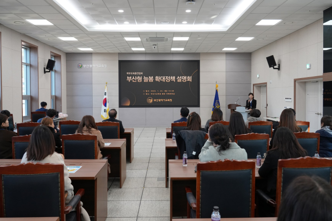 부산광역시교육청은 22일 오전 시교육청 별관 6층 국제회의실에서 부산학부모회총연합회 임원 28명을 대상으로 ‘부산형 늘봄 확대 정책 설명회’를 개최했다.