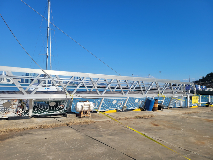 용호만유람선터미널에 위치한 부잔교 피해 사진. 독자 제보