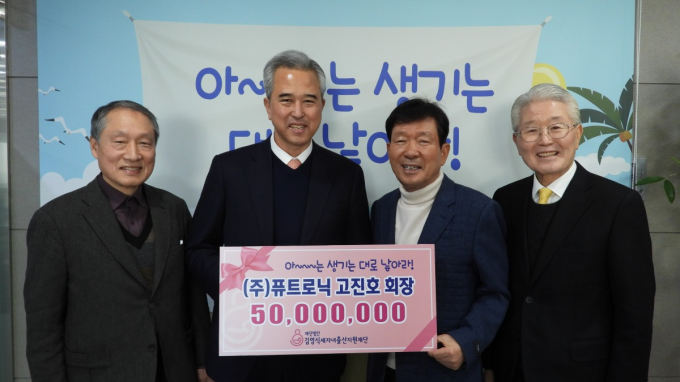 김영식세자녀출산지원재단은 이번에 퓨트로닉 고 회장이 5천만원을 기부해 지난 2021년부터 지금까지 1억2000만원을 전달해 최고 후원기업이 됐다고 밝혔다.